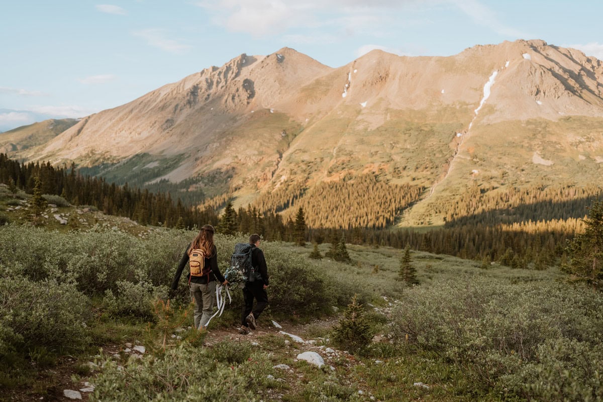 My Aspen Colorado elopement packages start at $4,400 for partial-day coverage (4 hours). While I offer shorter coverage, most couples opt for the full 8-hour experience. Why? Because it allows us to document the whole story. From the bumpy jeep ride up to a secluded trailhead to the alpenglow hike down, without ever looking at a watch or thinking about your cell phone.
