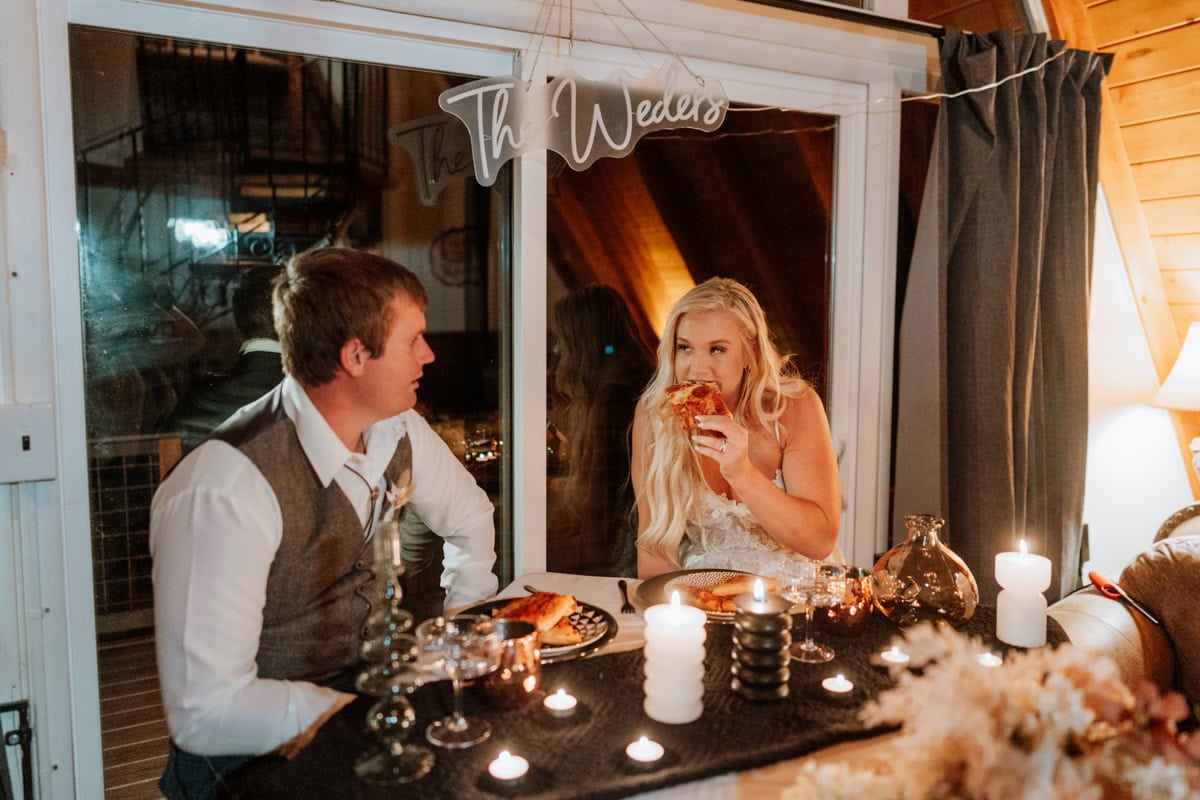 Forget a stuffy restaurant reservation, they ordered pizza! Seeing them sit down to a personalized pizza dinner and cake, surrounded by the decor Savanna picked out, was the perfect way to ground the day. It was laid back, intimate, and exactly what they needed after a day on the trails.