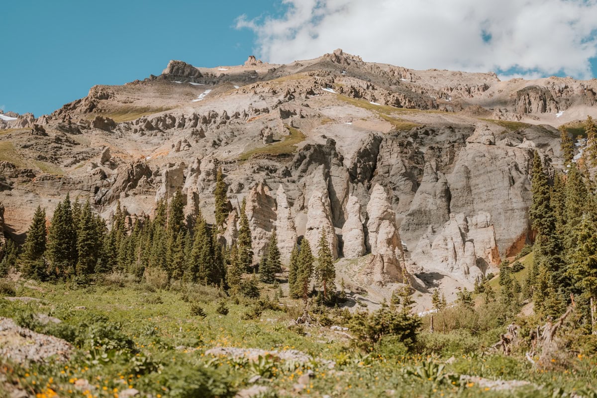 Yankee Boy Basin is one of those places that feels fake even when you’re standing in it. We stopped at Twin Falls, letting the mist hit our faces, before pushing further up the trail. The higher we drove, the more epic the views got.