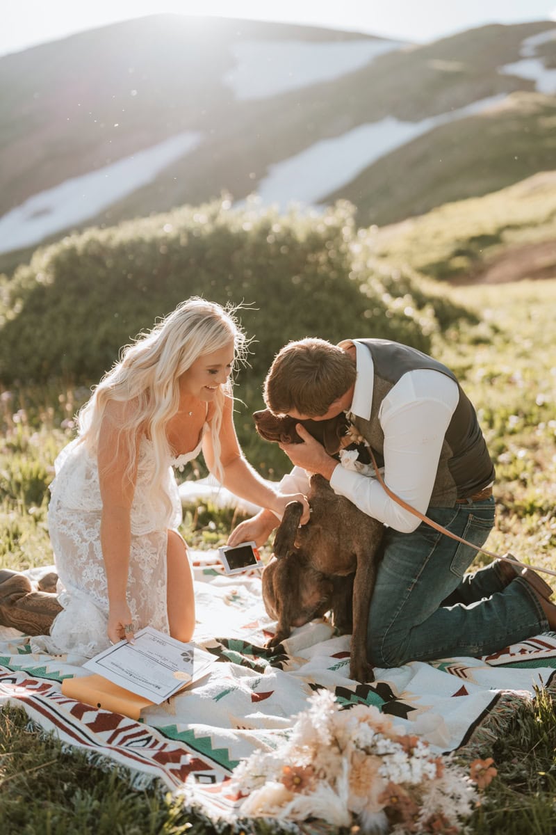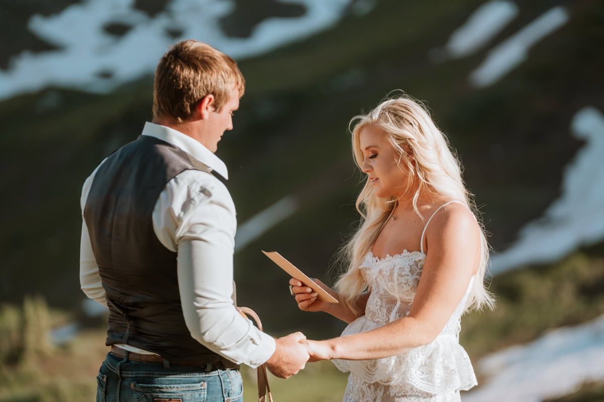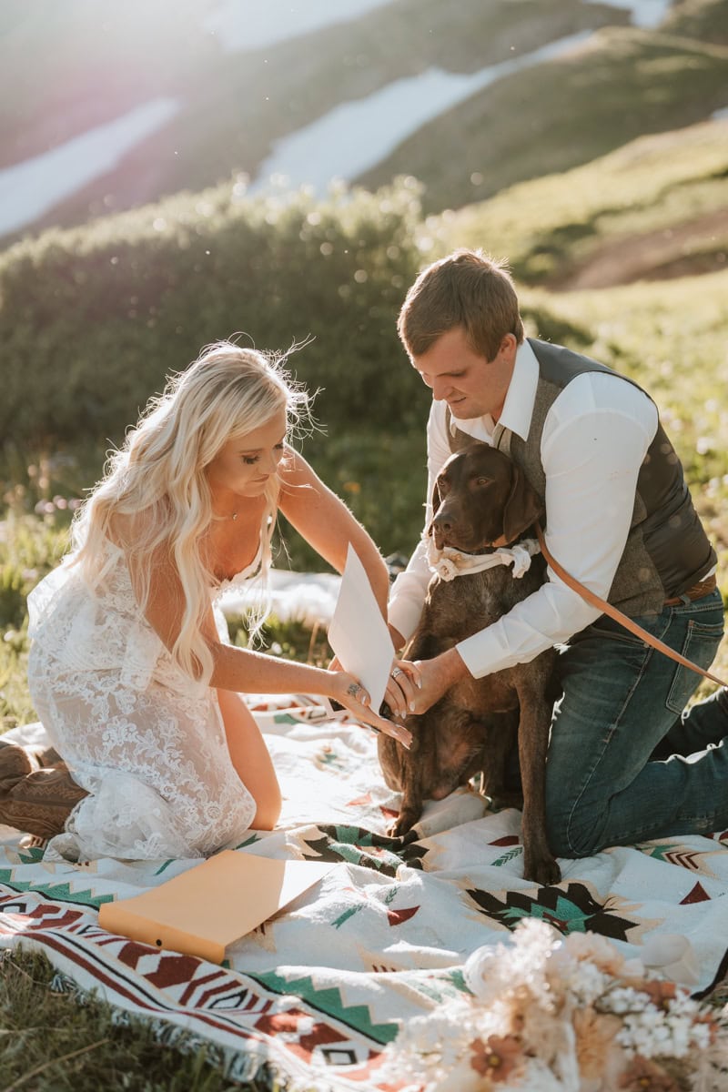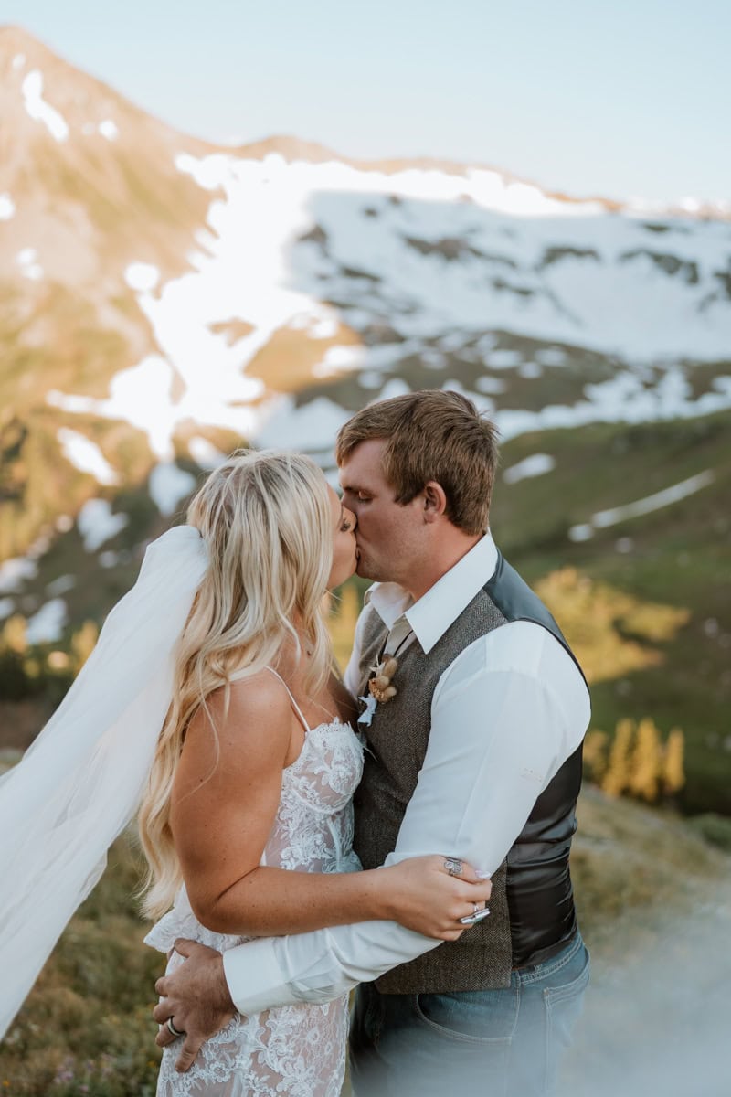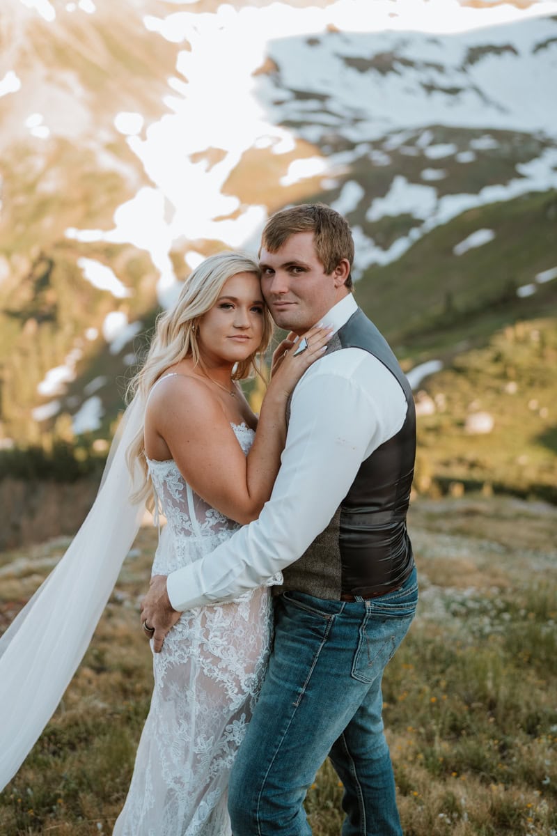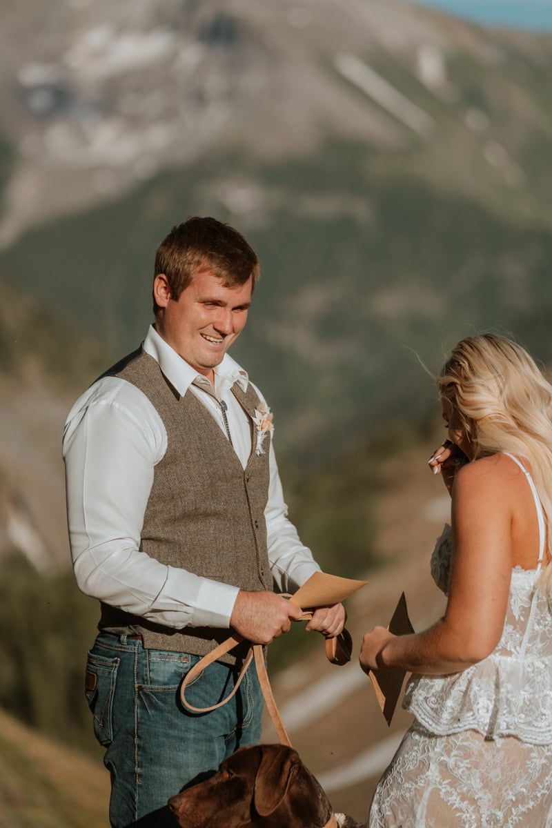 As the sun started to dip, casting that perfect alpenglow on the San Juan peaks, they read their private vows. No audience, no noise, just them, the mountains, and the sound of the wind. It was completely private and breathtakingly beautiful.